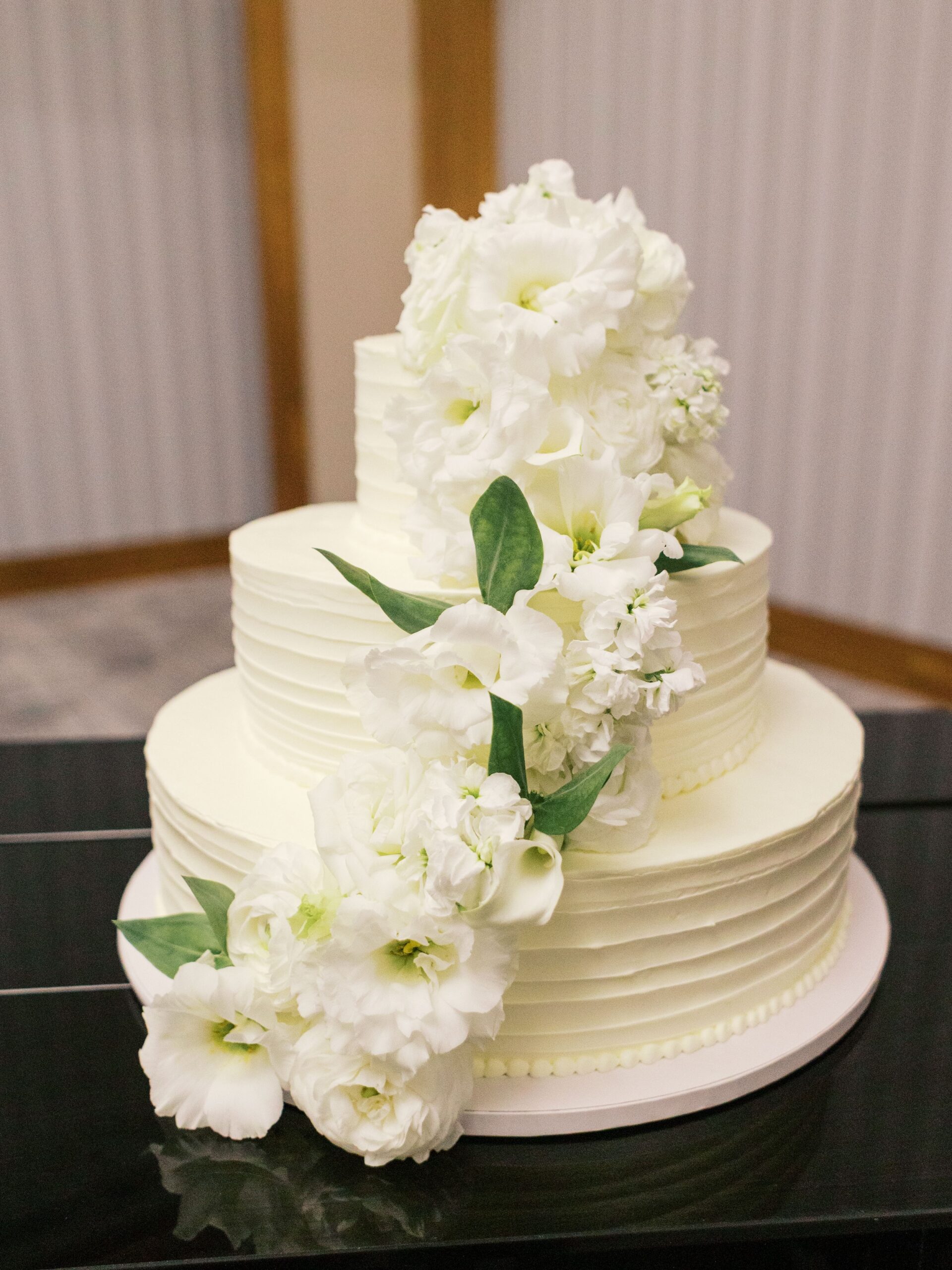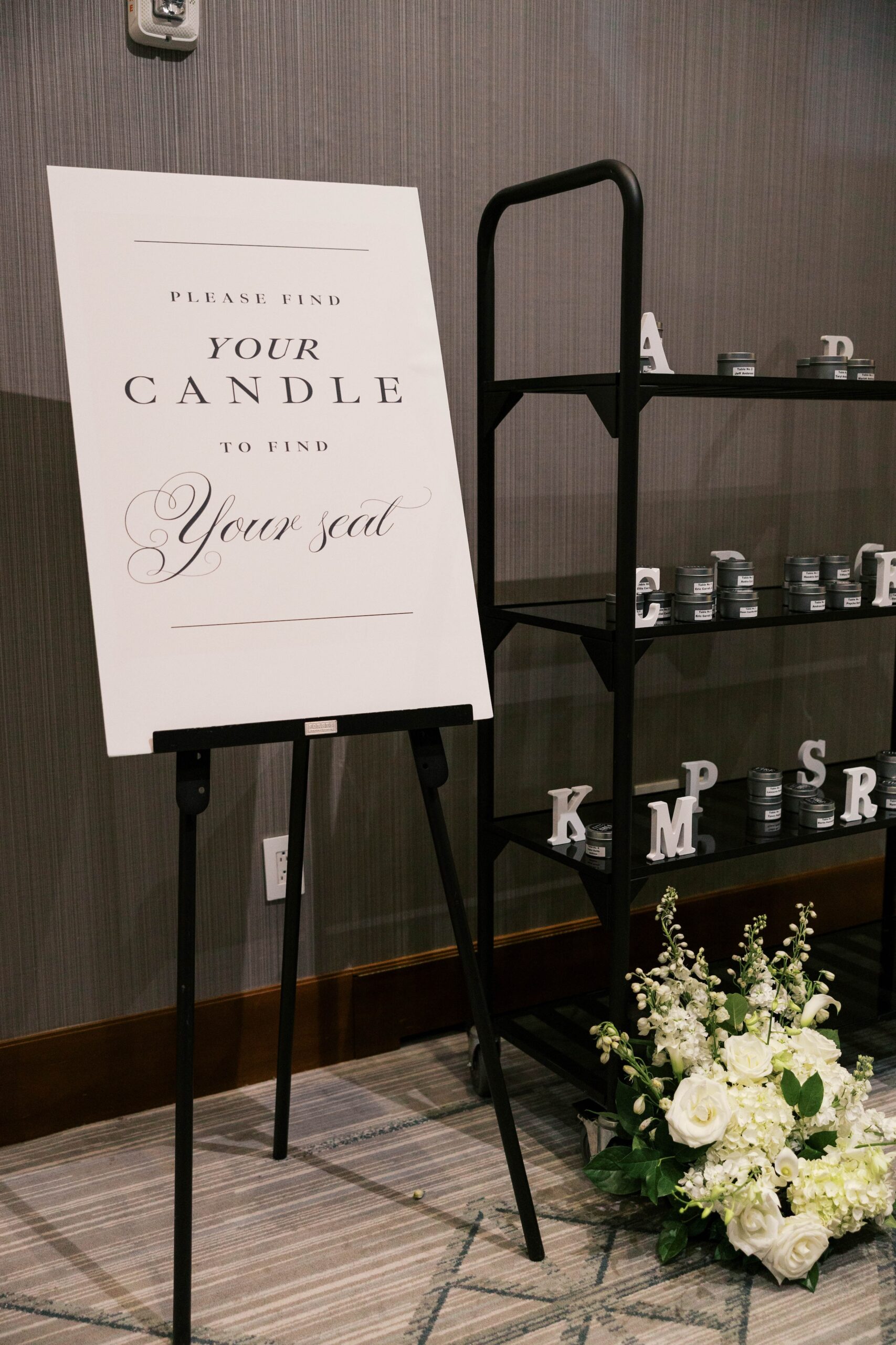 The space can be transformed to create the colorful wedding day of your dreams. Or, it can be accessed to carry out your unique wedding day vision, which was true for Erin and Wesley. Working side by side with them to plan their Four Seasons Nashville wedding through well-thought-out design choices & lush florals allowed us to dive into the details of their vision. They imagined a chic evening celebration. One filled with monochromatic flowers, crisp black linens, softly flickering candles, and classic wedding day stationery items.