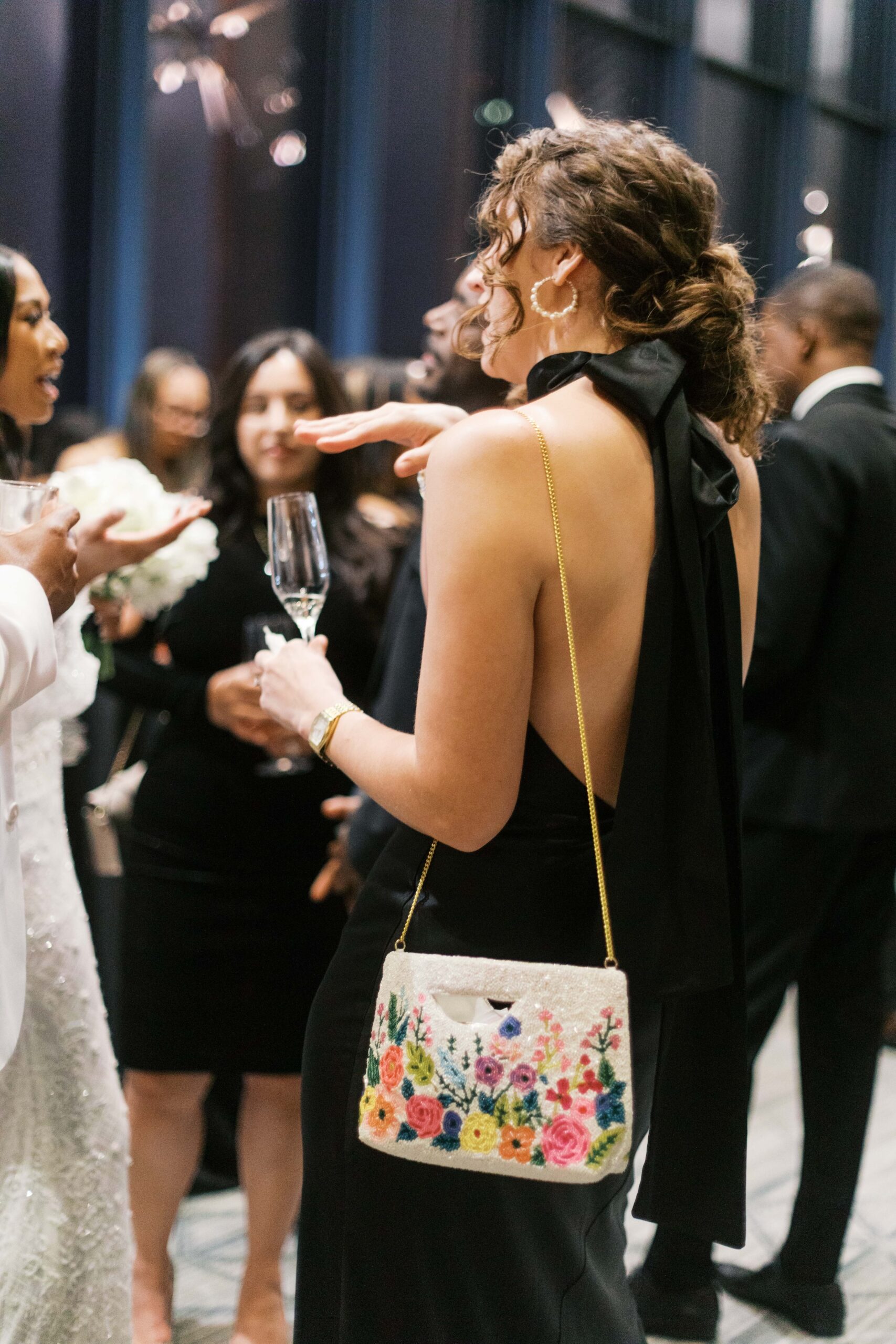 Though each table presented its own distinctive floral styling, the low-profile and taller vase arrangements were developed with connection in mind. Guests were able to spend the evening freely enjoying conversation and clinking glasses in honor of the newlyweds.